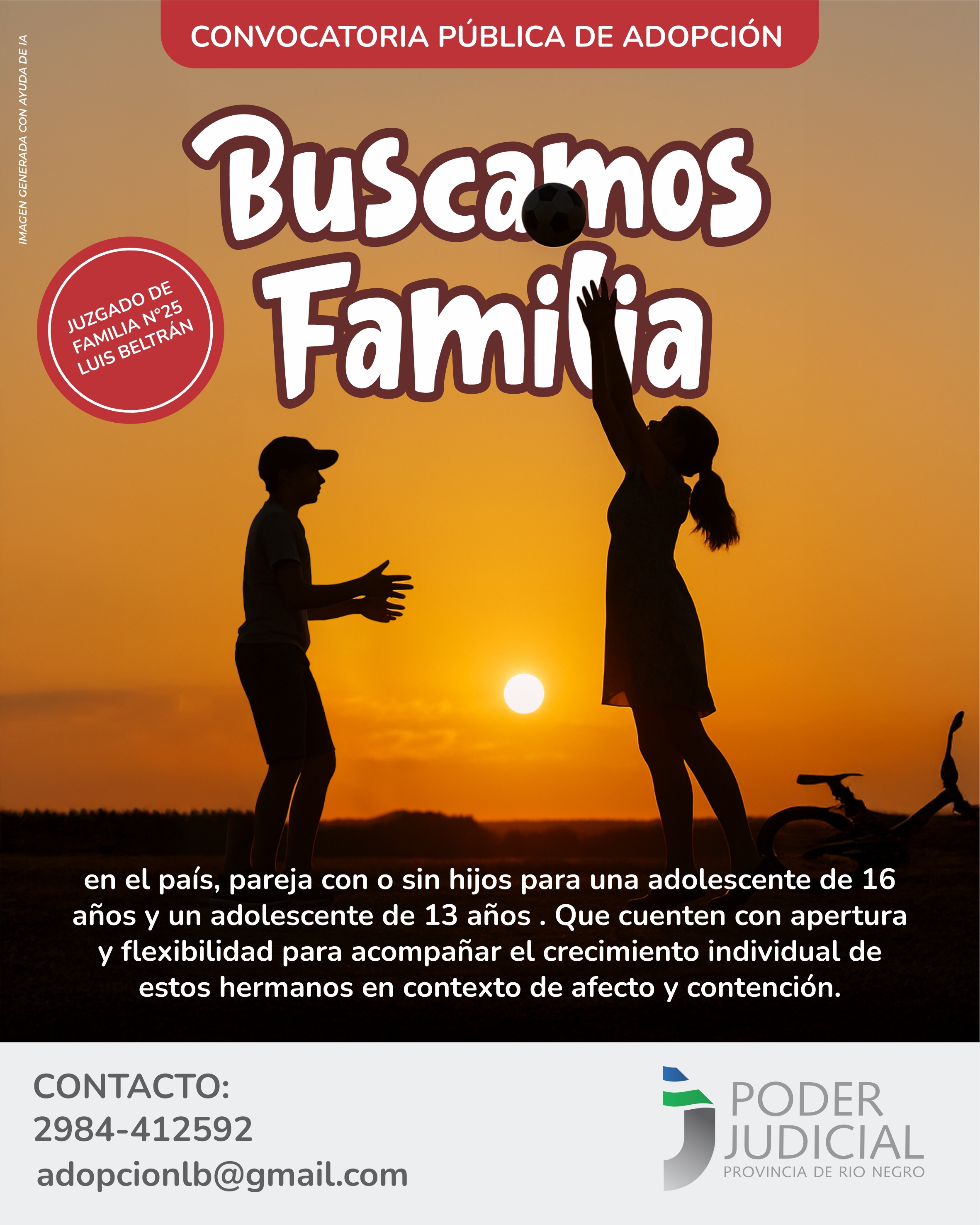 La Unidad Procesal del Fuero de Familia N° 11 de General Roca realizó el llamado a Convocatoria Pública de Adopción de dos hermanos de 13 y 15 años.