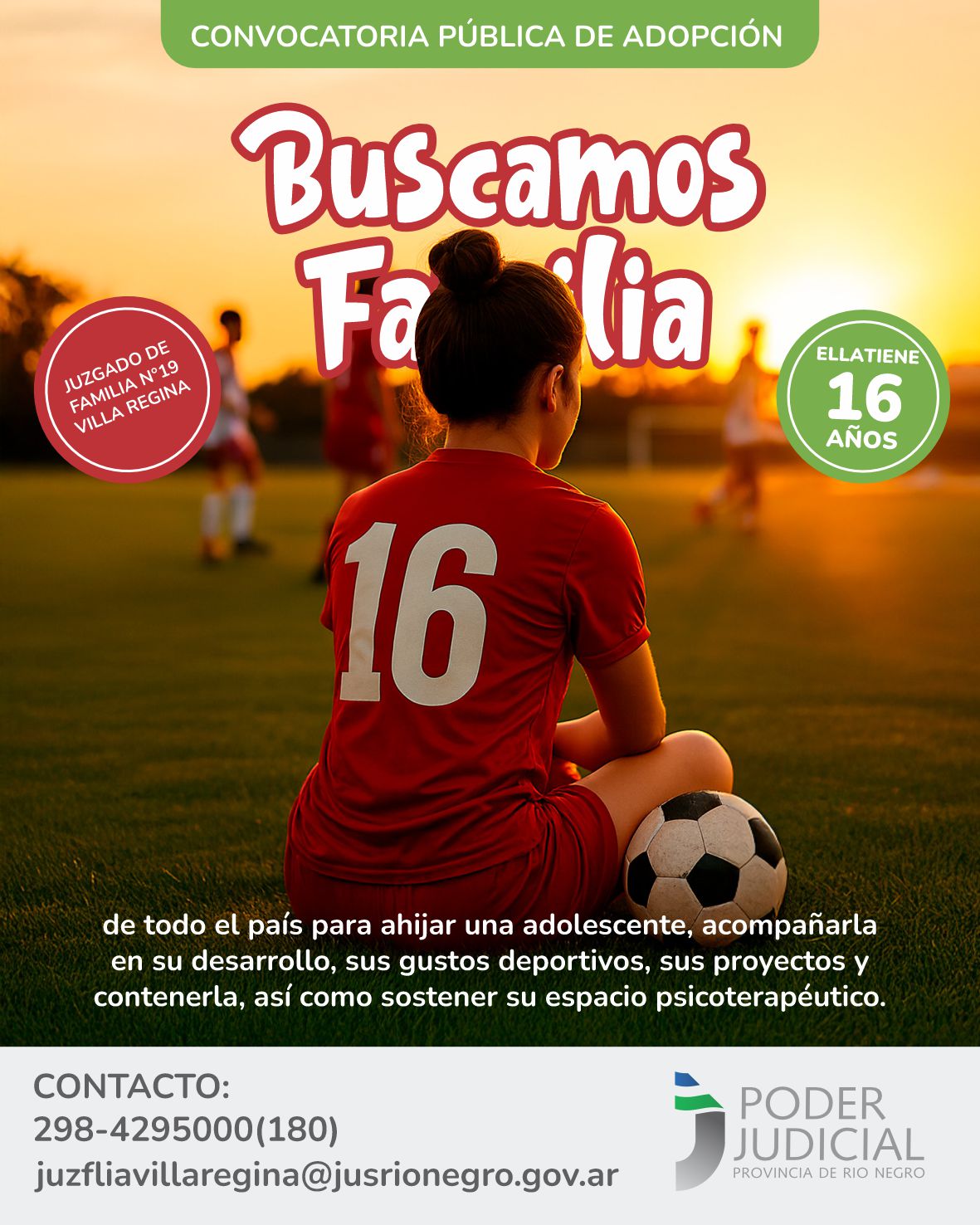 El Juzgado de Familia de Villa Regina, a través del Registro Único de Aspirantes a Guarda con Fines Adoptivos, convoca a familias interesadas en vincularse con una adolescente de 16 años.